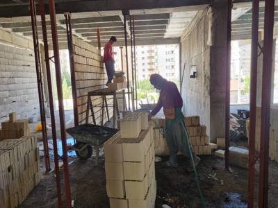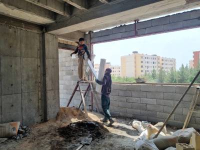اجرای والپست طبقات به اتمام رسیده و دیوار چینی طبقه ششم در حال انجام است