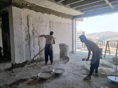 اجرای گچکاری طبقه هفتم در حال انجام است