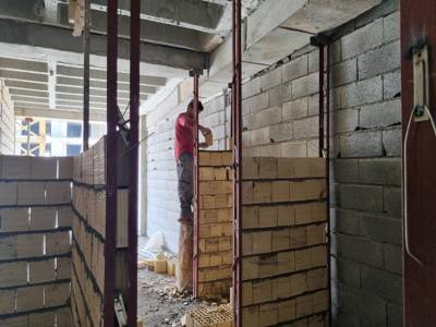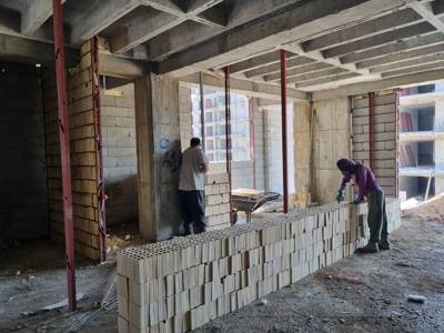 اجرای دیوار چینی طبقه دوم به اتمام رسیده و طبقه سوم آماده دیوار چینی می باشد.