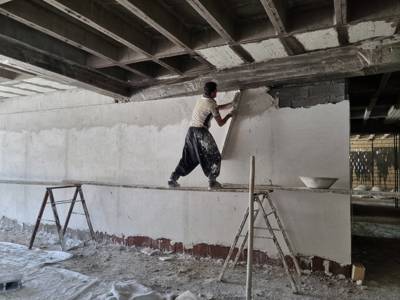 اجرای گچ کاری طبقه اول مسکونی در حال انجام است