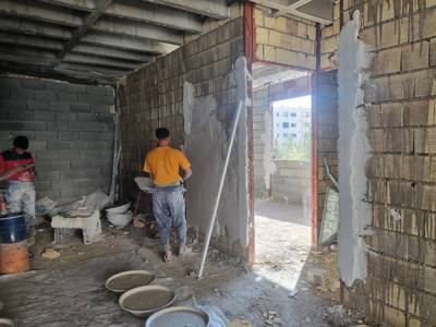 بلوک چینی کلیه طبقات مسکونی به اتمام رسیده و و گچکاری طبقه اول در حال انجام است
