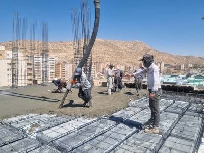 قالب بندی و آرماتور بندی سقف هشتم در حال انجام است
