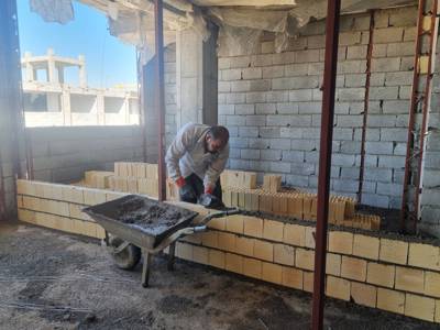 بلوک چینی کلیه طبقات مسکونی به اتمام رسیده و و گچکاری طبقه دوم در حال انجام است.